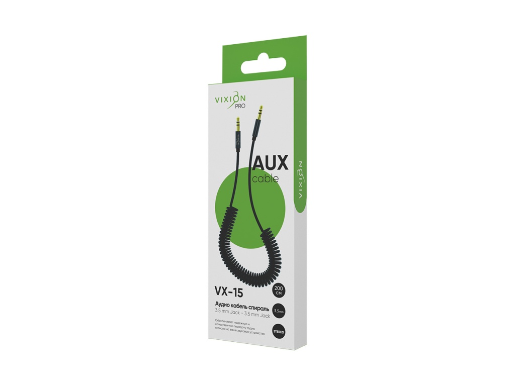 Черный кабель VIXION PRO VX-15 служит для соединения смартфонов, планшетов или MP3-плееров с музыкальными центрами, колонками, автомагнитолами через Jack 3,5 вход. Витой кабель отличается компактностью, не спутывается и позволяет избегать заломов и перегибов. Качественная полимерная оплетка защищает от механических повреждений. Длина провода 2 м.