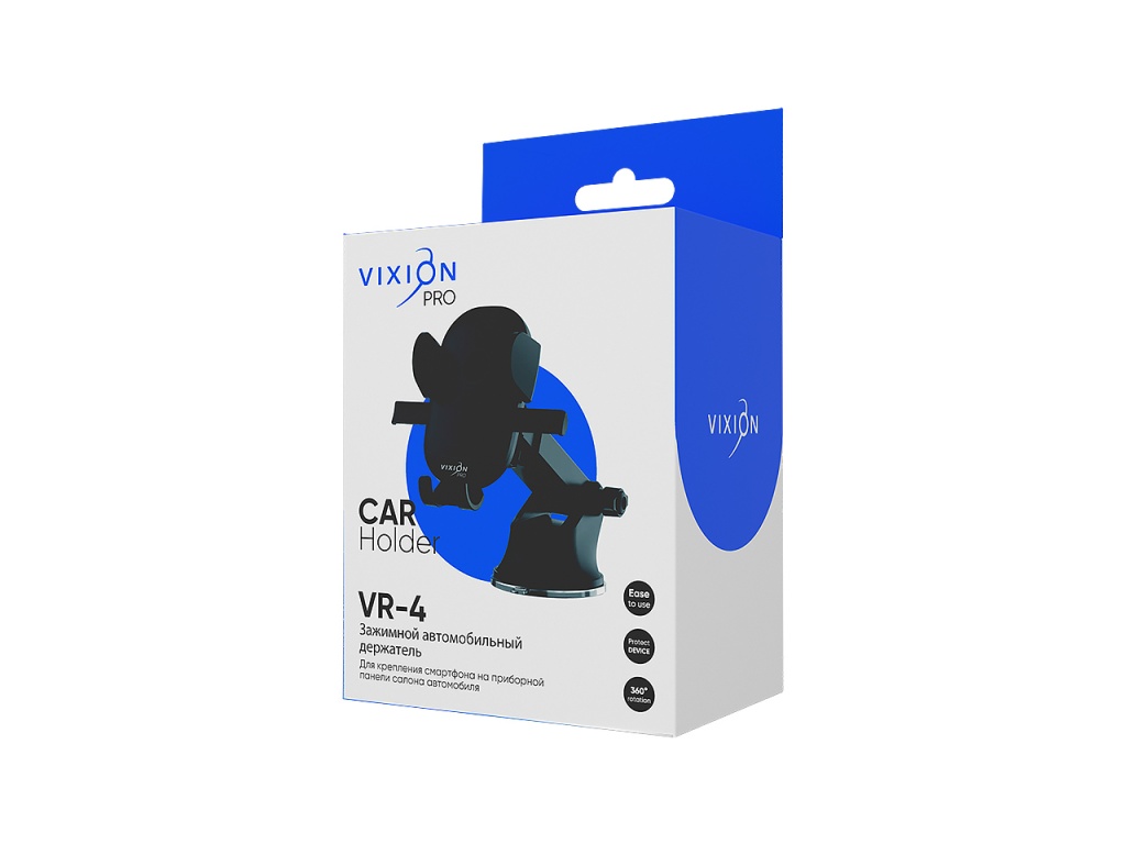 Модель VIXION PRO VR-4 универсальна и проста в использовании. С помощью фиксатора-присоски вы легко сможете закрепить устройство на лобовом стекле или приборной панели. Фиксатор плотно прилегает к стеклу и надежно удерживает устройство. Функция регулировки высоты/наклона, с возможностью поворота на 360°, позволяет расположить ваш девайс в максимально удобном для вас положении. Мягкие фиксирующие зажимы плотно удерживают гаджет и не царапают его. Держатель VIXION PRO VR-4 выполнен в черном цвете, подойдет для салона любого автомобиля. Аксессуар поддерживает как вертикальное положение устройства, так и горизонтальное.