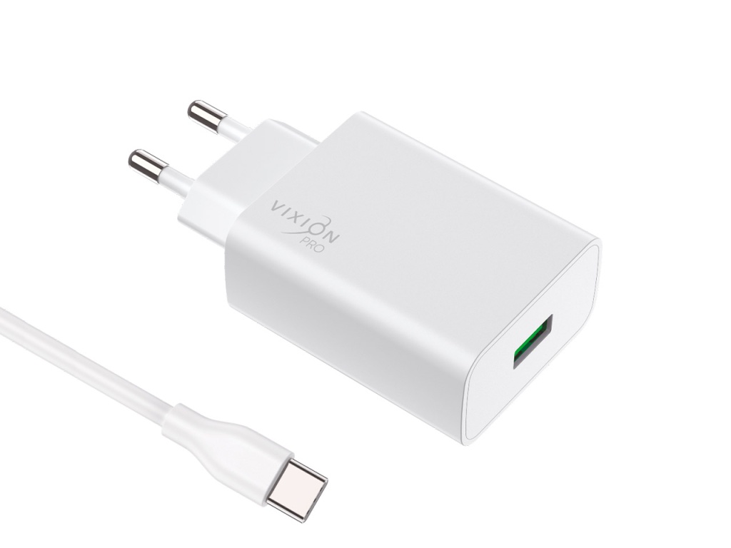 Сетевое зарядное устройство VIXION PRO VH-02 обеспечит гаджету безопасную подзарядку. Имеет простую и удобную конструкцию, в которой предусмотрен один USB-порт. Универсальное устройство можно использовать с различными USB-кабелями. Стильный пластиковый корпус аксессуара надежно защищает внутренние элементы от пыли, влаги и механических повреждений. Зарядное работает от сети 220 В, с максимальным выходным током в 2.4A. В комплект входит кабель USB-Type-c (1 метр).