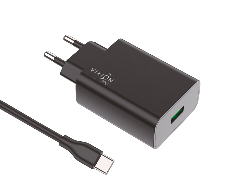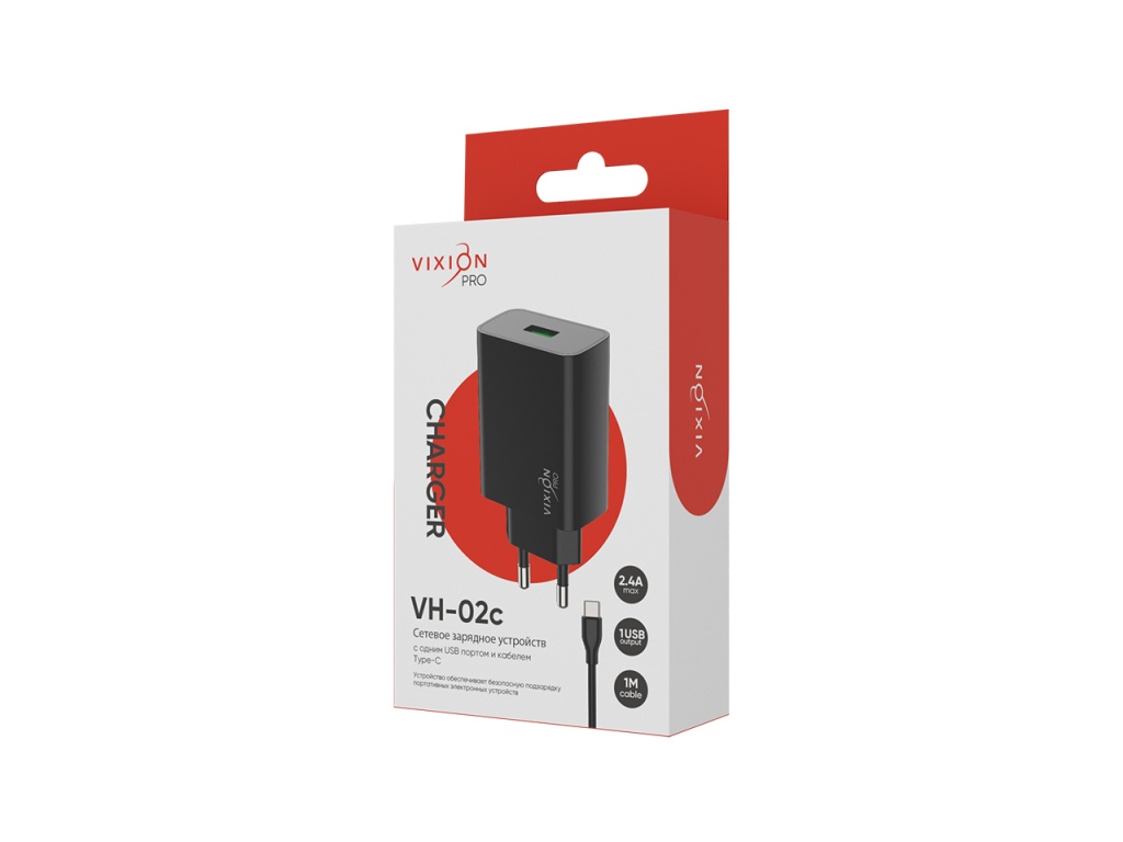 Сетевое зарядное устройство VIXION PRO VH-02 обеспечит гаджету безопасную подзарядку. Имеет простую и удобную конструкцию, в которой предусмотрен один USB-порт. Универсальное устройство можно использовать с различными USB-кабелями. Стильный пластиковый корпус аксессуара надежно защищает внутренние элементы от пыли, влаги и механических повреждений. Зарядное работает от сети 220 В, с максимальным выходным током в 2.4A. В комплект входит кабель USB-Type-c (1 метр).