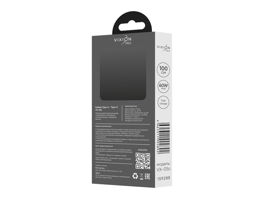 Кабель VIXION PRO VX-05c подойдет для передачи данных, синхронизации и быстрой подзарядки электронных устройств. Белая оплетка кабеля отличается высокой прочностью и гибкостью. Максимальная сила тока составляет 3 А, с мощностью до 60 Вт.
