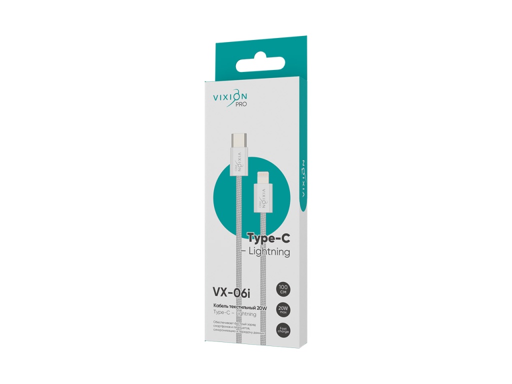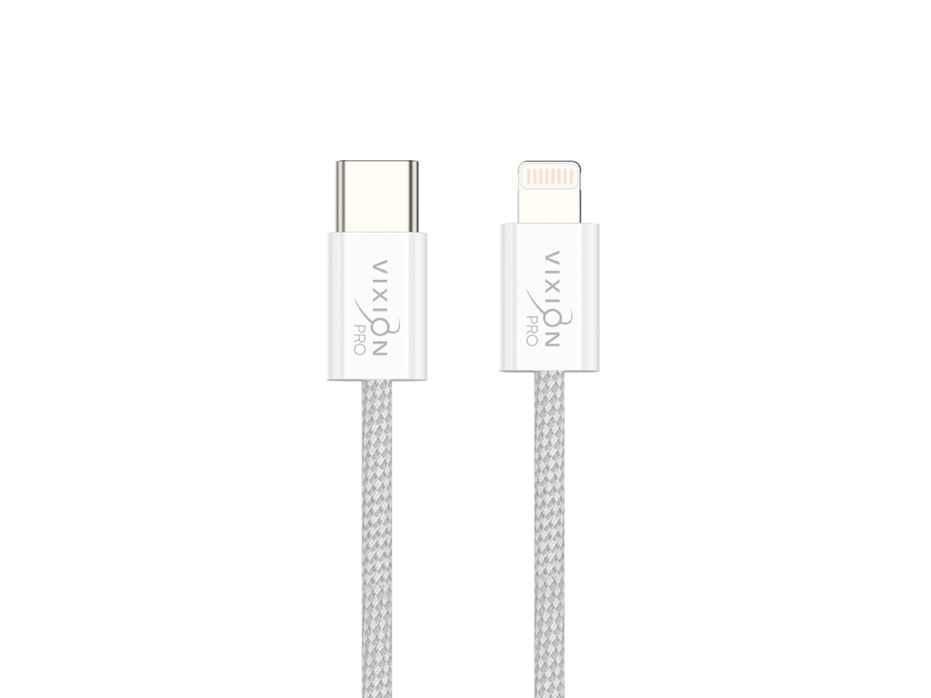 Кабель VIXION PRO VX-06i подойдет для перемещения файлов, синхронизации и быстрой подзарядки электронных устройств. Максимальная сила тока составляет 3 А, с мощностью до 20 Вт. Позволит подключить устройства с разъёмом Lightning 8 pin к порту Type-C. Белая PVC, Nylon оплетка кабеля отличается высокой прочностью и гибкостью.