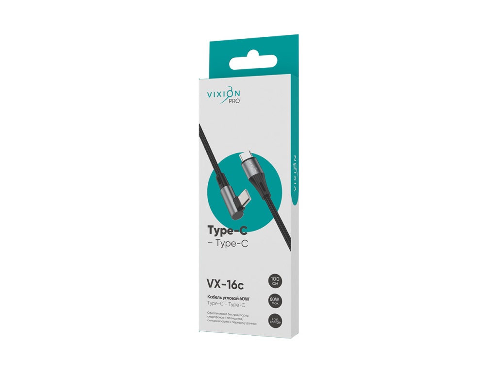 Кабель Type-C VIXION PRO VX-16c служит для быстрой зарядки и передачи данных устройств, мощность 60 Вт. Благодаря своему стилевому решению аксессуар прекрасно подойдет любому пользователю. Его L-образный формат позволит комфортно удерживать мобильный девайс в руках во время зарядки или обмена данными. Шнур обладает высокой гибкостью, длина 1 метр.