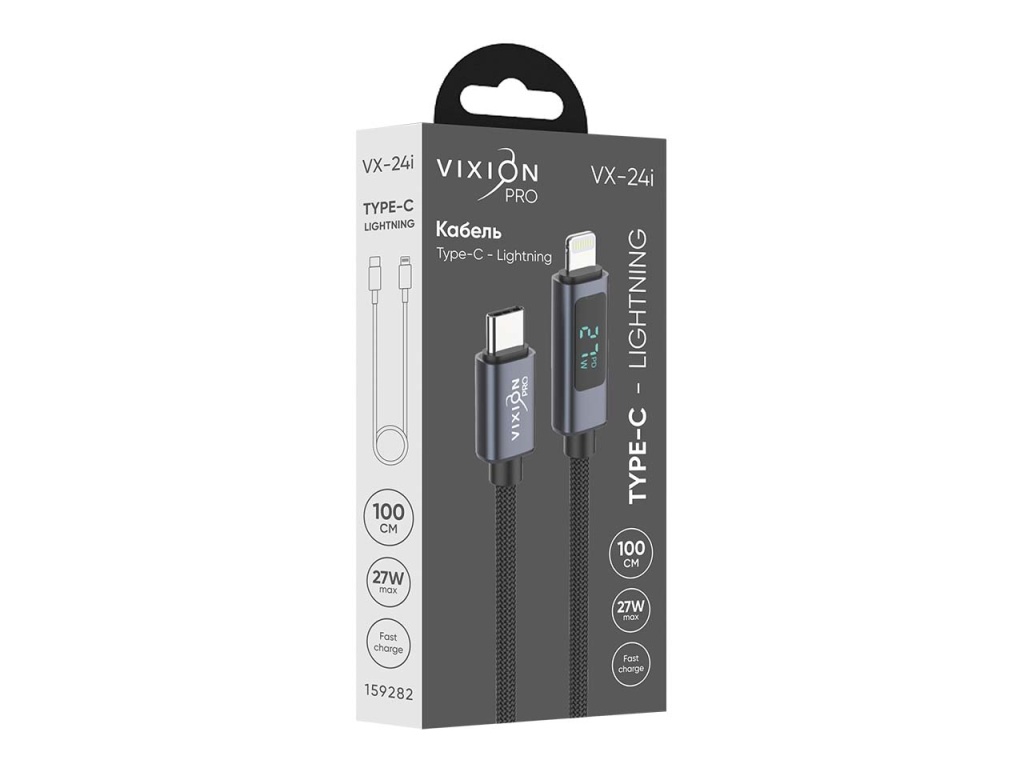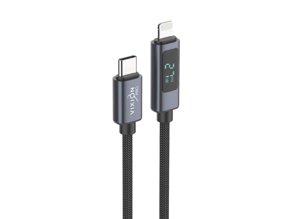 Type-C -кабель VIXION PRO VX-24i с информационным дисплеем и мощностью 27W быстро пополнит заряд устройств с разъемом Lightning и обеспечит качественную синхронизацию и передачу данных. Благодаря встроенному LED-экрану пользователь может видеть текущую мощность в режиме реального времени, что дает четкое представление о возможностях как адаптера, так и заряжаемого устройства. Аксессуар облачен в качественную оплетку (PVC + Нейлон), которая сохранит гибкость и убережет шнур от заломов.