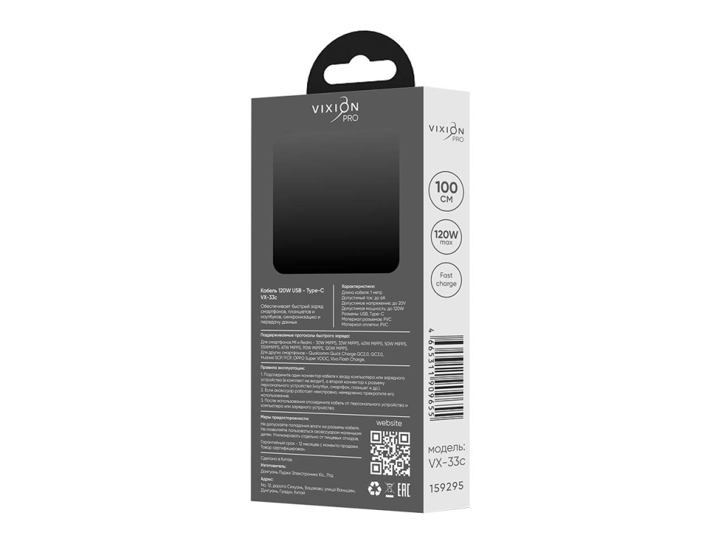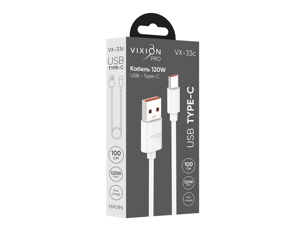 Высокопроизводительный USB-кабель VX-33c разработан для скоростной передачи данных, синхронизации и зарядки мощных девайсов, оснащенных разъемом Type-C (до 120 Вт). Предельная сила тока достигает 6 А при напряжении 20V. Кабель белого цвета характеризуется повышенной износостойкостью и эластичностью. Метровая длина шнура позволяет удобно заряжать ноутбуки и планшеты, даже если розетка находится на удалении.