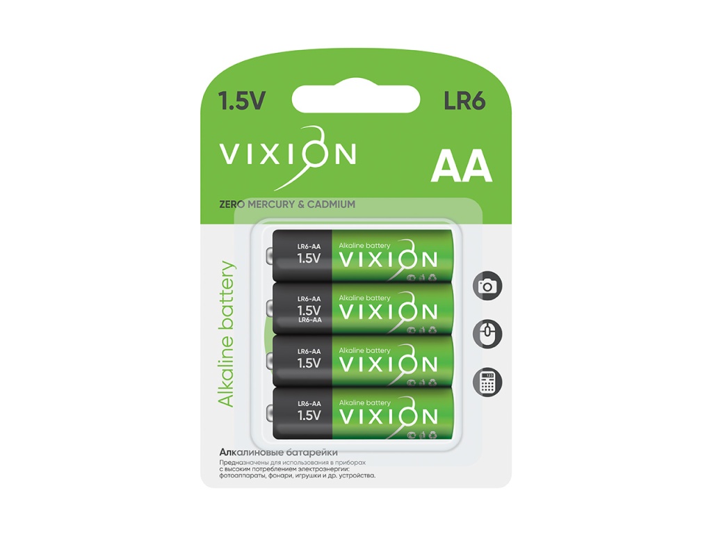 Функционируют даже при низких и высоких температурах, их режим работы от -20 до +54 С°. Батарейки Vixion LR6 оснащены плотным ядром из высокоочищенного цинка, что позволяет поместить в них больше энергии и использовать дольше других. Для снижения коррозии их покрывают никелированной сталью. Алкалиновые батарейки имеют надёжную герметизацию, конструкция разработана для предотвращения взрыва.