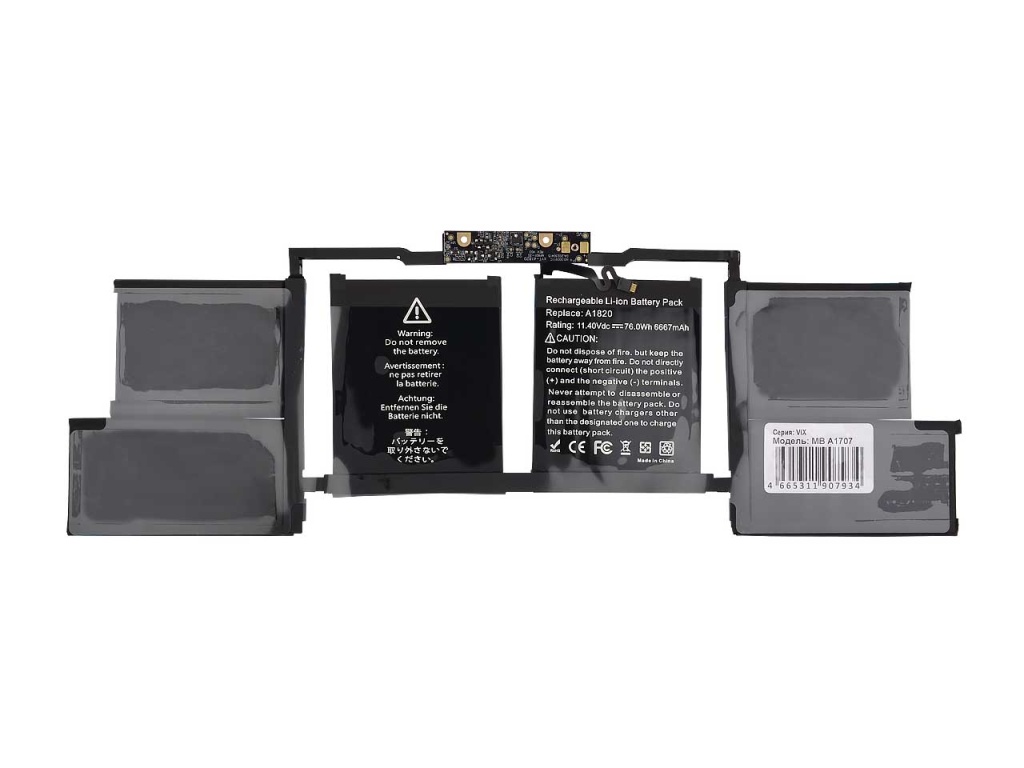 Аккумулятор может работать при температуре от -15С° до +40 С°. Удобен и прост в использовании. Полностью совместим с моделями MacBook Pro Retina 15" A1707/A1820.