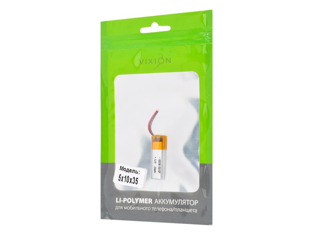 Универсальный Li-Pol аккумулятор (5x10x35 mm) позволит не беспокоиться о подзарядке устройства на протяжении длительного времени. Компактный источник энергии прост в эксплуатации, безопасен и долговечен.