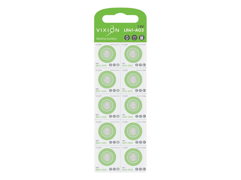 Алкалиновые батарейки Vixion LR41 подойдут для электронной техники компактных размеров: лазерных указок, градусников, детских игрушек, калькуляторов, наручных часов, автономных датчиков, электронных весов и других устройств. По своей форме элемент питания напоминает таблетку, относится к щелочным батарейкам. При своем небольшом размере изделие имеет высокие технические характеристики и отличные показатели энергоемкости, а малый коэффициент саморазряда позволит батарейке прослужить долгое время.