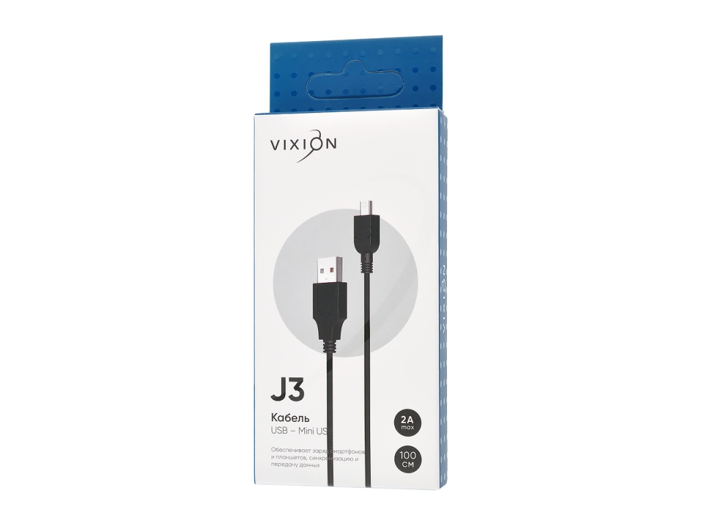 Универсальный кабель J3 предназначен для зарядки телефонов, фотоаппаратов, видеокамер и других устройств с miniUSB портом. Кабель выполнен в классическом черном цвете, со стандартным покрытием ПВХ. Станет незаменимым помощником обладателю большого количества цифровых медиаустройств. 1 м — оптимальная длина кабеля для комфортной работы. USB-кабели от VIXION отличаются от аналогов своей высокой гибкостью, качественными контактами и отличной защищенностью от помех и внешних воздействий.