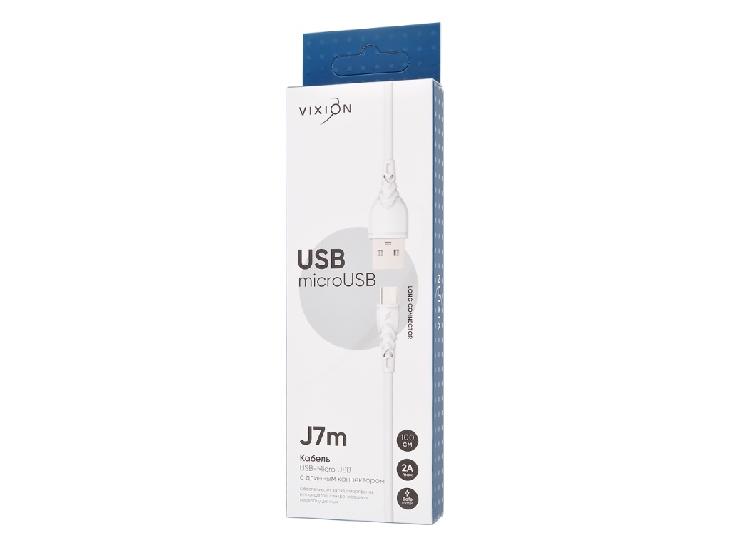 Кабель VIXION J7 с удлиненным разъемом прекрасно подойдет владельцам устройств с усиленным корпусом или с защитным чехлом. Модель выполнена в белом оттенке, по всей длине шнура имеются продольные бороздки, усиливающие сопротивление при изгибе (предотвращают заломы провода). 1 м — оптимальная длина кабеля для удобства в работе с ним. USB-кабели от VIXION отличаются от аналогов своей высокой гибкостью, качественными контактами и отличной защищенностью от помех и внешних воздействий.