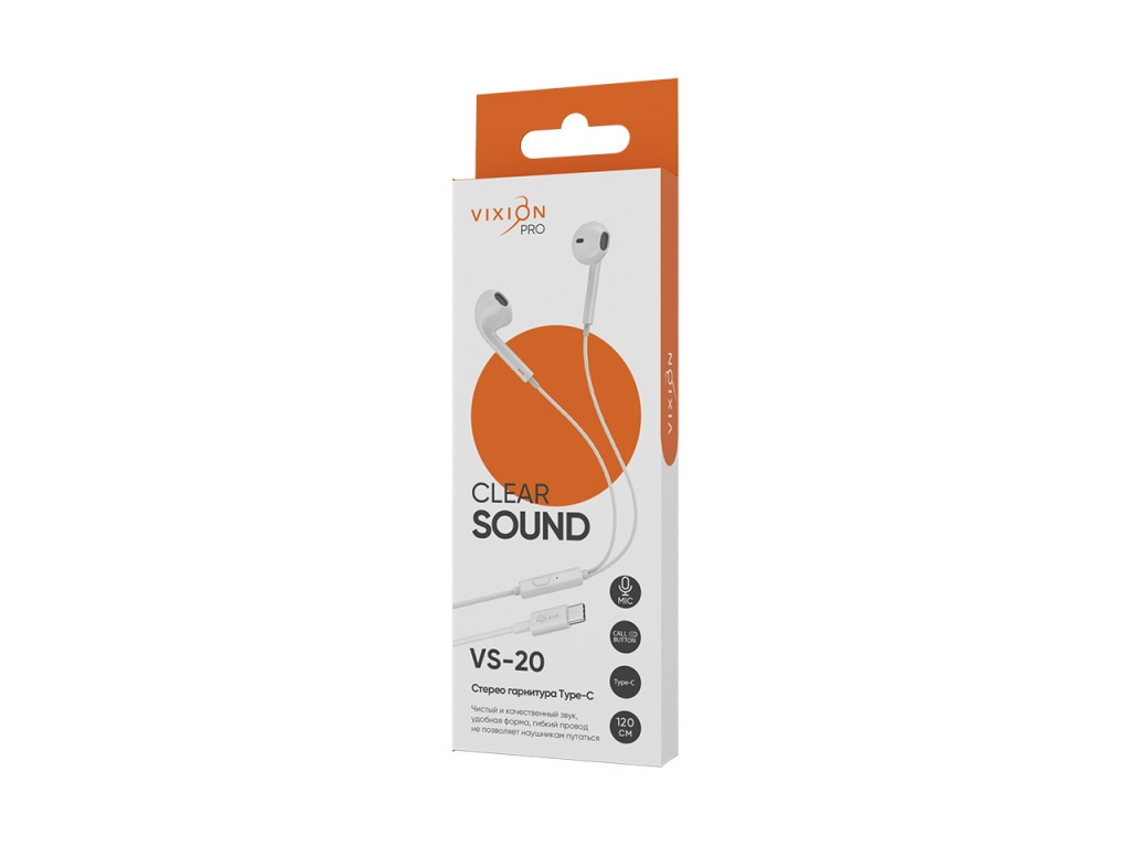 Качественная стереогарнитура Type-C VIXION PRO VS-20 имеет легкий белый ABS корпус и прочный PVC аудиокабель (1,2 метра). Гарнитура оснащена кнопкой ответа. Подойдет для мобильных устройств с разъемом Type-C. Диапазон воспроизводимых частот 20-20000 Гц.