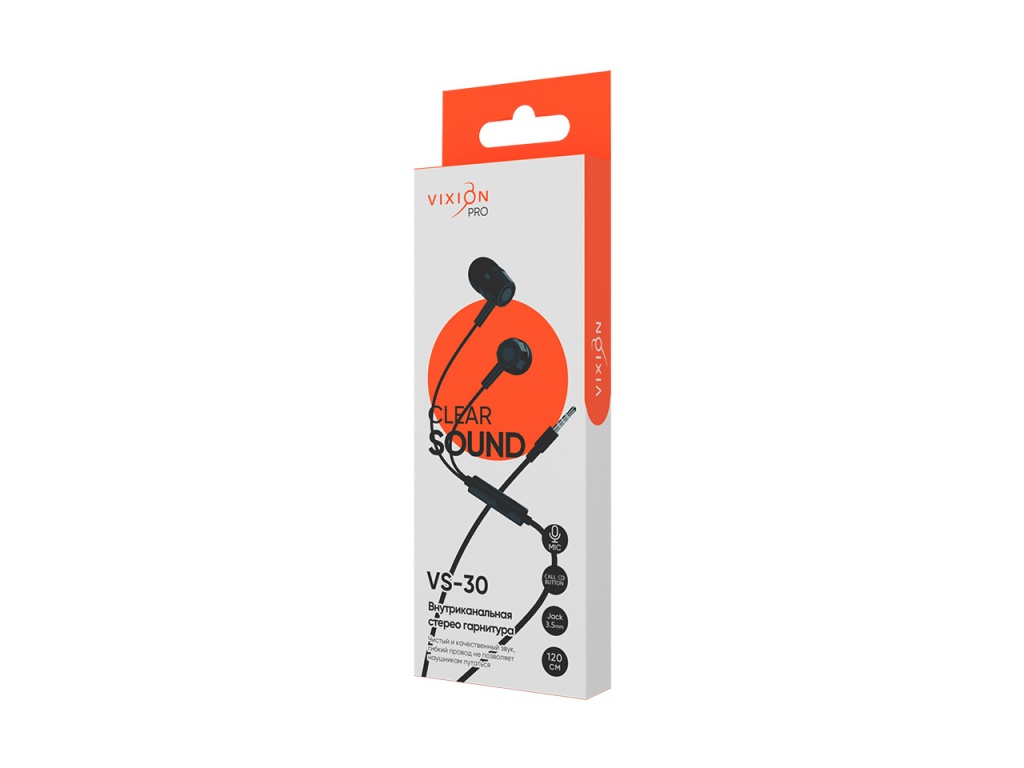 Качественная внутриканальная стереогарнитура VIXION PRO VS-30 имеет легкий черный ABS-корпус и прочный PVC аудиокабель (1,2 метра). Гарнитура оснащена кнопкой ответа. Подойдет для мобильных устройств с разъемом Jack 3,5. Диапазон воспроизводимых частот 20-20000 Гц.
