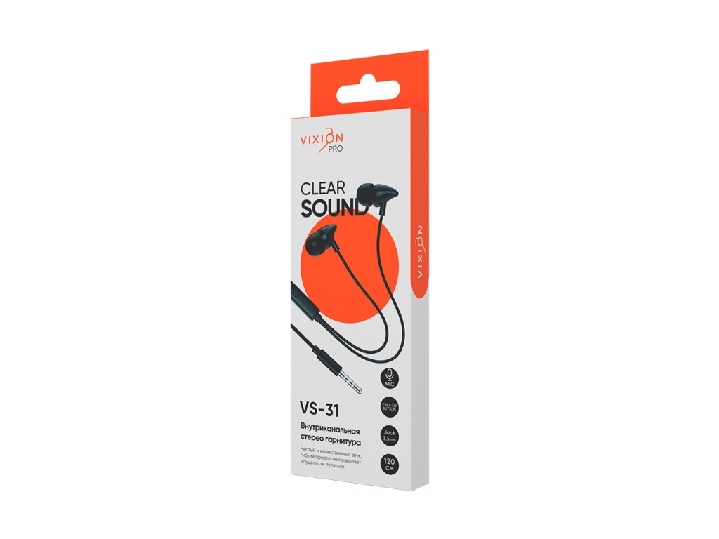 Гарнитура VIXION PRO VS-31 в черном оттенке сочетает в себе современный дизайн, удобство и функциональность. Модель изготовлена из качественного полимера, длина кабеля 120см. Подойдет для устройств с разъемом Jack 3.5 мм. Универсальная модель имеет компактные и удобные наушники, они обеспечат чистое звучание в частоте 20 - 20000 Гц. Гарнитура совместима со смартфонами, ноутбуками, мобильными телефонами и устройствами компании Apple. Оснащена кнопкой ответа. Встроенный микрофон будет незаменим при разговоре по мобильному устройству.