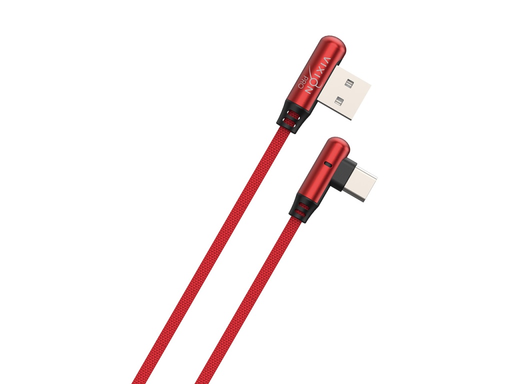 Кабель VIXION PRO VX-14c обеспечивает заряд, синхронизацию и передачу данных различным мобильным устройствам. Имеет L-образный штекер, который позволяет комфортно удерживать мобильный девайс в руках во время работы с ним. Усиленный L-образный или угловой тип кабеля меньше подвержен заломам и перегибам, удобен в использовании, не запутывается. Шнур обладает высокой гибкостью, его длина 1 м.