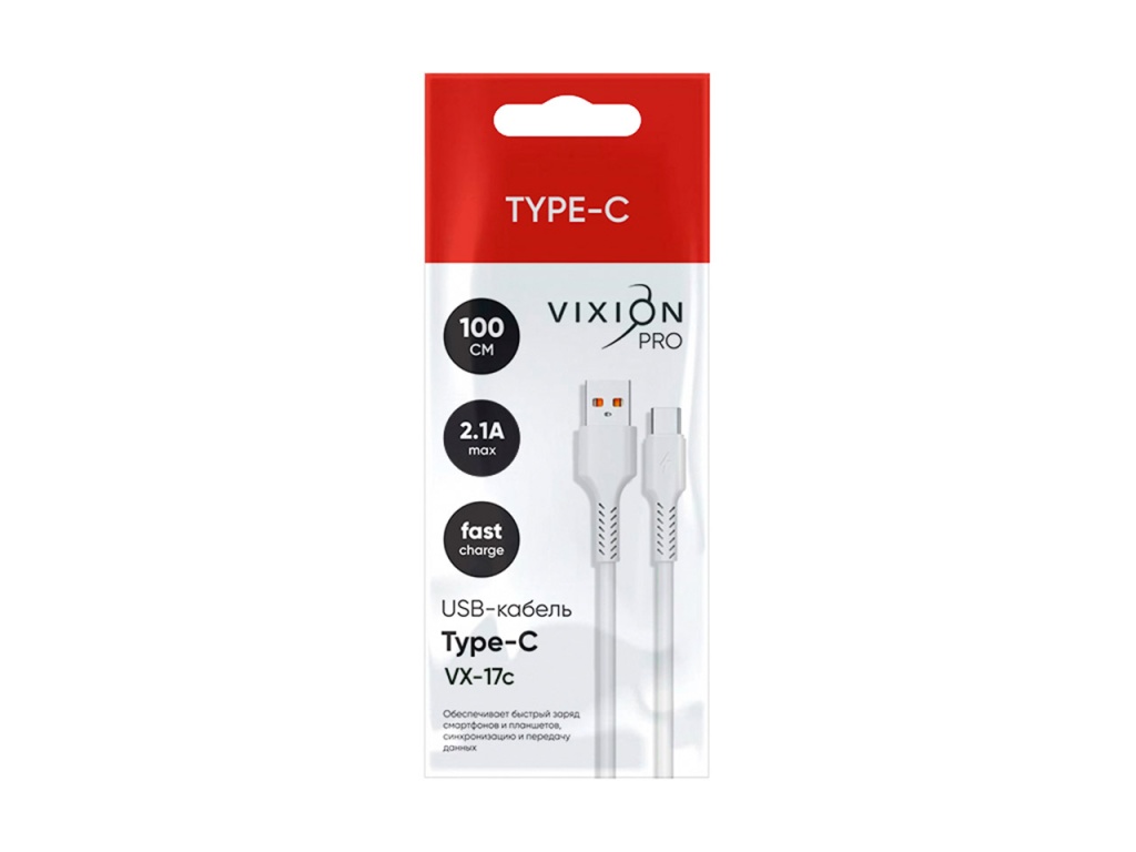 USB-кабель VIXION PRO VX-17c станет отличным помощником для пользователей смартфонов, планшетов, мобильных устройств и других гаджетов с разъемом Type-C. С его помощью можно легко передавать данные и выполнять другие необходимые операции. Благодаря высокой пропускной способности в 2100 мА, он идеально подходит для быстрой зарядки аккумуляторов. Длина кабеля составляет 1 метр, что обеспечивает удобство использования. Прочная PVC-оплетка надежно защищает шнур от повреждений, а долговечные коннекторы гарантируют надежное соединение при многократном подключении. Аксессуар выполнен в классическом белом цвете.