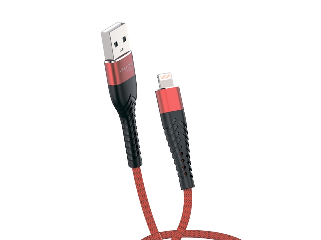Универсальный кабель VIXION PRO VX-26i обеспечит быстрый заряд синхронизацию и передачу данных цифровым устройствам с разъемом Lightning 8 pin. Оптимальная длина шнура позволит всегда брать его с собой. Гибкий текстильный кабель красного цвета прекрасно защищает от внешних воздействий и помех, а усиленная форма штекера от заломов.